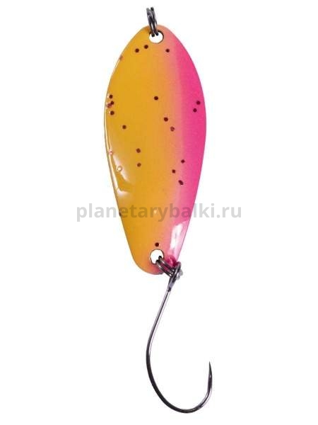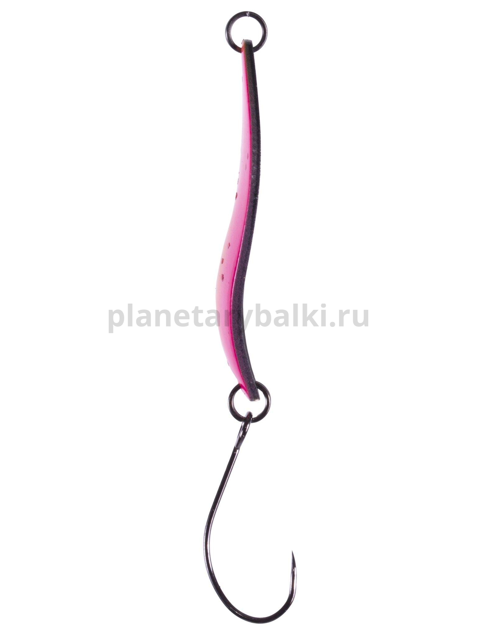 При ловле форели рекомендуется крепить крючок через заводное кольцо к узкой стороне блесны.