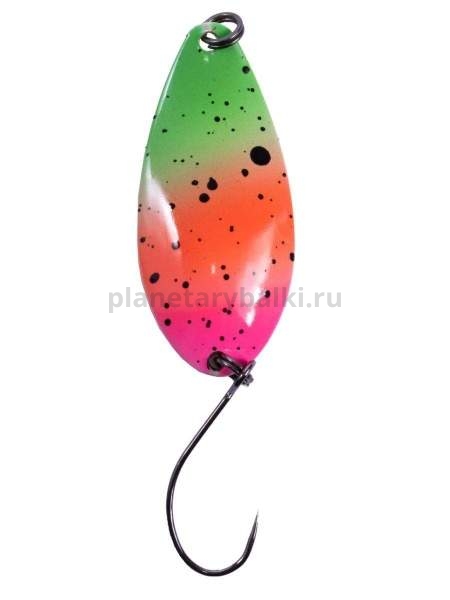 Блесну предпочтительно использовать в стоячей воде. Быстрая проводка или сильная струя могут сбить блесну в штопор. Безбородый крючок.