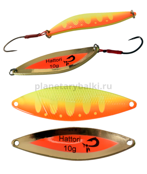 Блесна Hattori оснащена крючком с ассистом, который работает по принципу оперения на стреле, стабилизируя игру блесны, и не позволяет ей срываться в штопор даже на самой быстрой проводке. Крючок с ассистом за счет гибкого соединения с блесной не позволяет возникать рычагу, вырывающему крючок изо рта крупной рыбы при вываживании. Hattori великолепно подходит для ловли жереха, окуня, ленка, лосося и форели.