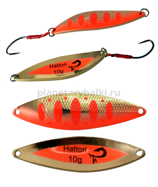 Блесна Hattori оснащена крючком с ассистом, который работает по принципу оперения на стреле, стабилизируя игру блесны, и не позволяет ей срываться в штопор даже на самой быстрой проводке. Крючок с ассистом за счет гибкого соединения с блесной не позволяет возникать рычагу, вырывающему крючок изо рта крупной рыбы при вываживании. Hattori великолепно подходит для ловли жереха, окуня, ленка, лосося и форели.
