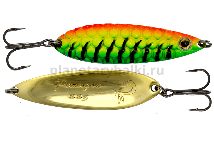 Колеблющаяся блесна вытянутой формы с S-образным изгибом и с центром тяжести, смещённым в заднюю часть приманки, благодаря чему эта блесна прекрасно летит при забросе и устойчиво играет на сильном течении. Блесна Luremax Paragon великолепно подходит для ловли жереха, судака, кумжи и лосося на реках с сильным течением. Оригинальная поверхность приманки придаёт блесне "живой", мерцающий блеск, реалистично имитирующий мерцание чешуи кормовой рыбы.