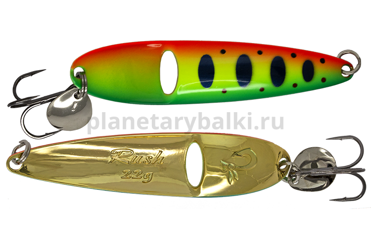 Блесна оригинальной конструкции – создаёт мощный акустический след, что позволяет рыбе обнаруживать приманку с большего расстояния. Лепесток на кольце тройника служит не только для создания визуального и акустического эффекта, но ещё вызывает к сбивке ритма игры блесны, заставляя приманку бросаться из стороны в сторону, реалистично имитируя поведение кормовой рыбы. Блесна Luremax Rush предназначена для ловли жереха, кумжи и лосося на реках с быстрым течением.
