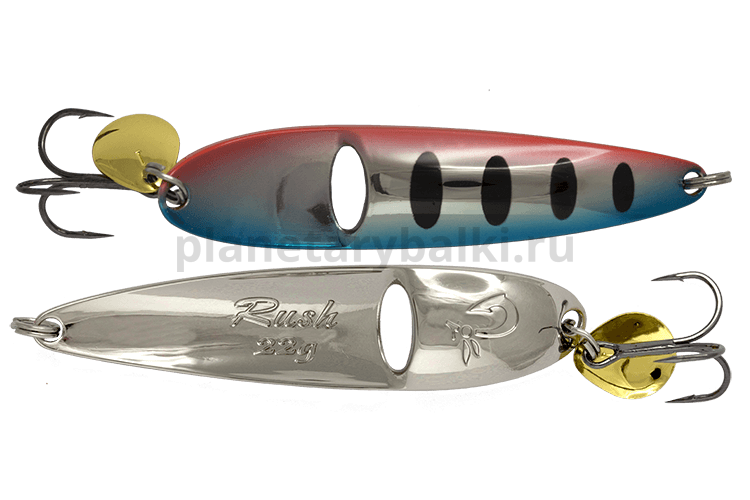Блесна оригинальной конструкции – создаёт мощный акустический след, что позволяет рыбе обнаруживать приманку с большего расстояния. Лепесток на кольце тройника служит не только для создания визуального и акустического эффекта, но ещё вызывает к сбивке ритма игры блесны, заставляя приманку бросаться из стороны в сторону, реалистично имитируя поведение кормовой рыбы. Блесна Luremax Rush предназначена для ловли жереха, кумжи и лосося на реках с быстрым течением.