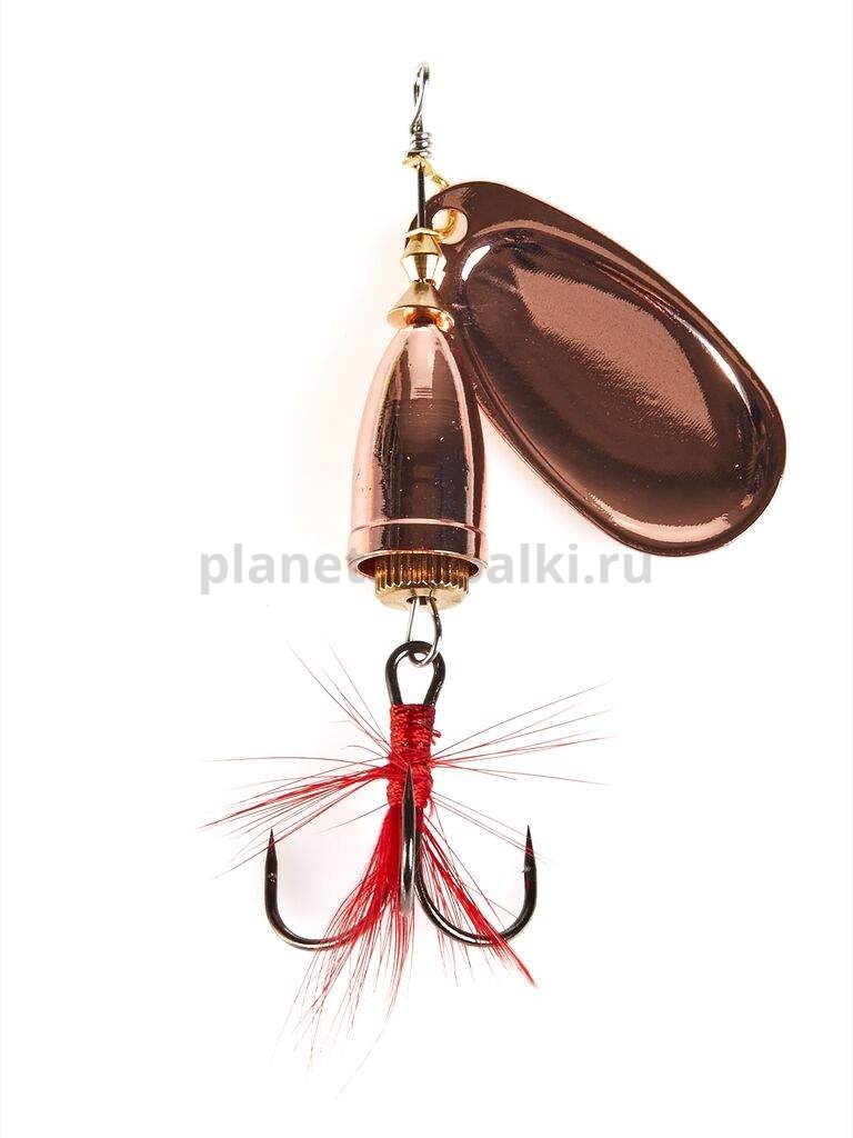 Классическая вращающаяся блесна с округлым вытянутым лепестком типа «comet». Имеет оригинальный сердечник конусообразной формы с засечками, напоминающий колокольчик. При проводке, он создает в воде низкочастотные звуки, дополнительно привлекающие рыбу. Дополнительное преимущество конструкции сердечника состоит в том, что сердечник блесны свободно крутится вокруг своей оси и таким образом значительно уменьшает закручивание лески. Блесна универсального применения. Лепесток при вращении отклоняется от оси на 45ᵒ. Применяется для ловли в стоячих водоемах и в реках со слабым и средним течением. Пять размеров, от 01 до 05 и весом 3,5; 6; 8; 10; 13 грамм, семь расцветок: BRD, C, CRD, G, GRD, S, SRD