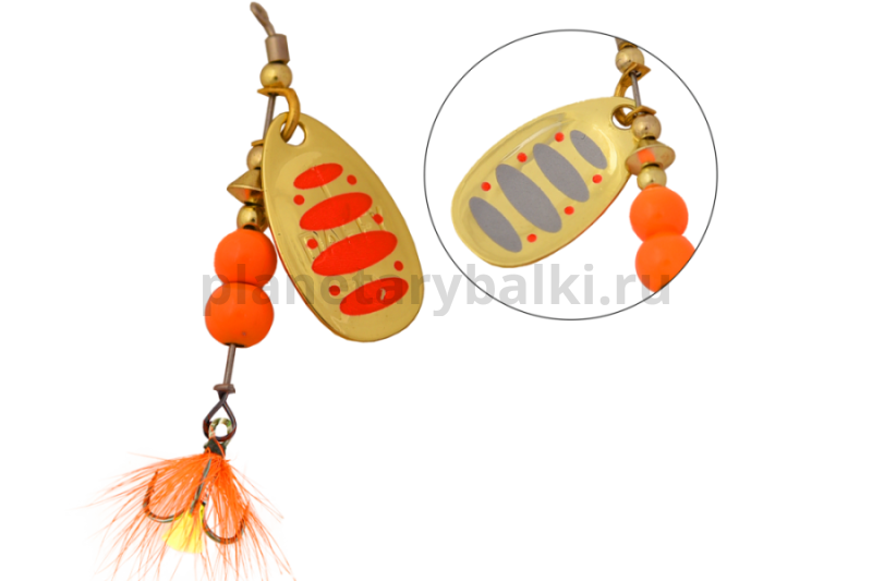 Приманка оснащена тройниками с мушкой. Это позволяет решить сразу несколько задач: выполняется маскировка тройника, осуществляется стабилизация задней части блесны при проводке и, самое главное, мушка служит дополнительной изюминкой для привлечения хищника.