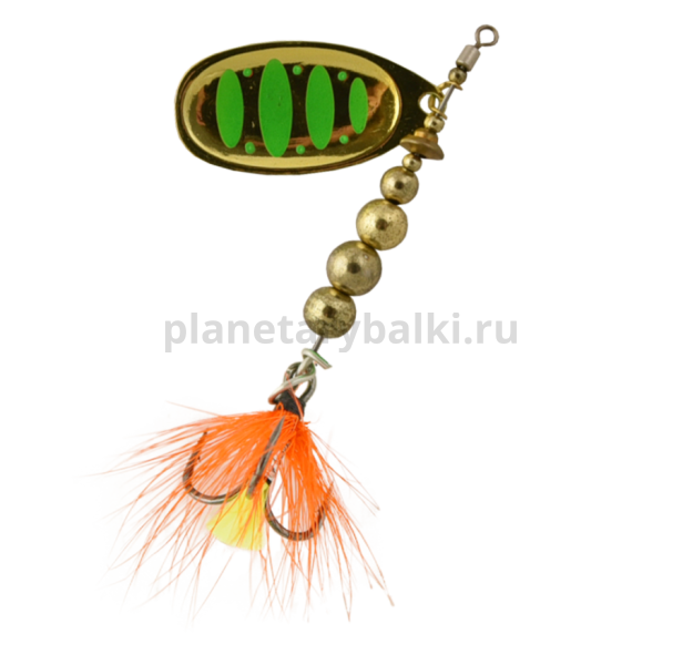 Daffy - вращающаяся блесна с широким лепестком, который при вращении отклоняется от оси на угол 50-55 градусов, что позволяет использовать эту приманку как на течении, так и в стоячей воде.