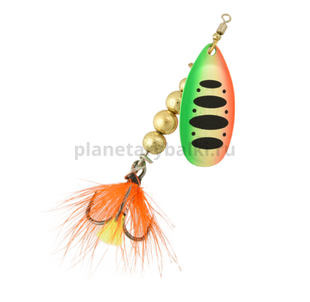 Daffy - вращающаяся блесна с широким лепестком, который при вращении отклоняется от оси на угол 50-55 градусов, что позволяет использовать эту приманку как на течении, так и в стоячей воде.