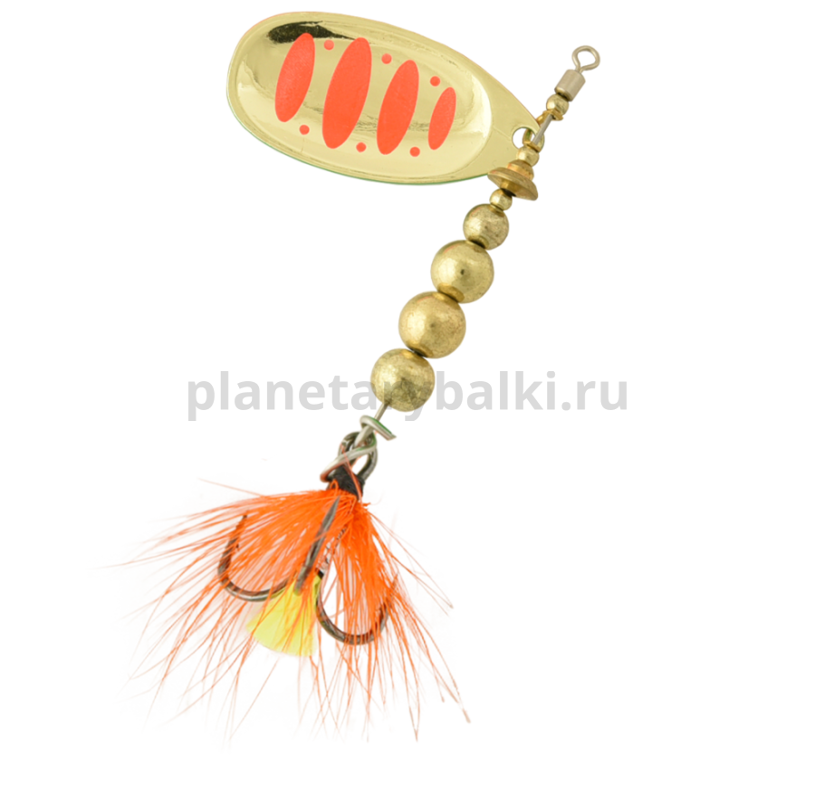 Приманка оснащена тройниками с мушкой. Это позволяет решить сразу несколько задач: выполняется маскировка тройника, осуществляется стабилизация задней части блесны при проводке и, самое главное, мушка служит дополнительной изюминкой для привлечения хищника.