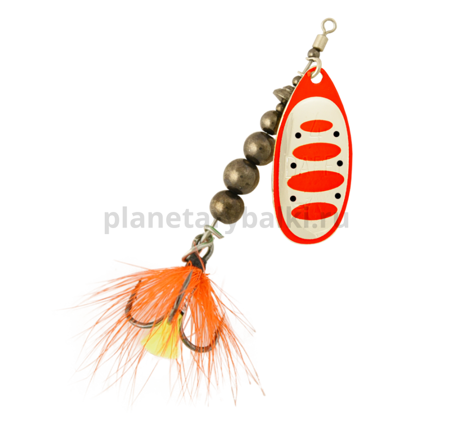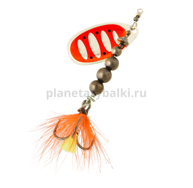 Приманка оснащена тройниками с мушкой. Это позволяет решить сразу несколько задач: выполняется маскировка тройника, осуществляется стабилизация задней части блесны при проводке и, самое главное, мушка служит дополнительной изюминкой для привлечения хищника.