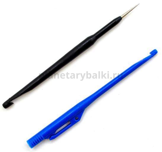 Простой и практичный экстрактор из пластика. Имеет на двух концах разные по величине рабочие части. Тем самым инструмент подходит для излечения крючков в двух диапазонах номеров. Эта модель также оснащена иглой для распутывания узлов.