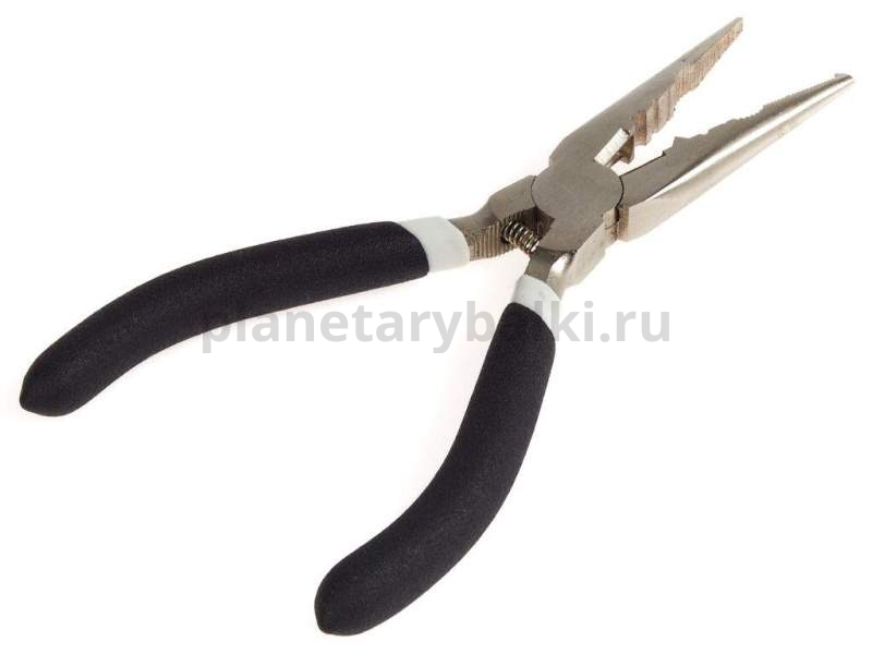 Металлический рыболовный экстрактор в форме щипцов. Длины экстрактора достаточно для того, чтобы безопасно извлечь крючок из зубастой пасти щуки. Экстрактор оборудован приспособлением для опрессовки обжимных трубочек при изготовлении различных рыболовных оснасток, устройством для разжимания заводных колец, а также резаком для перерезания лески и плетёнки. Ручки экстрактора оборудованы пружиной, которая делает работу с ним ещё более удобной.