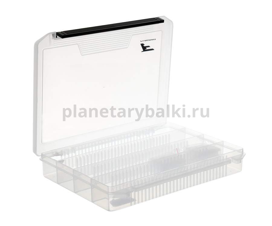 Flagman Tackle Box #4 – прозрачная рыболовная коробка, которая изготовлена из полипропилена. Устойчива к воздействию материала мягких пластиковых приманок. Коробка Tackle Box #4 оборудована четырьмя широкими отсеками для хранения приманок. Кроме того, каждый отсек делится на несколько ячеек с помощью съемных перегородок. Такой поход позволяет произвольно выбирать размер и количество ячеек, формируя внутреннее пространство коробки под конкретные задачи. Крышка крепиться с помощью шарнирного соединения и закрывается на замок-защелку. Размеры Tackle Box #4: 245х190х40 мм.