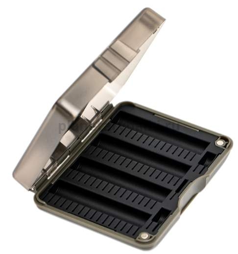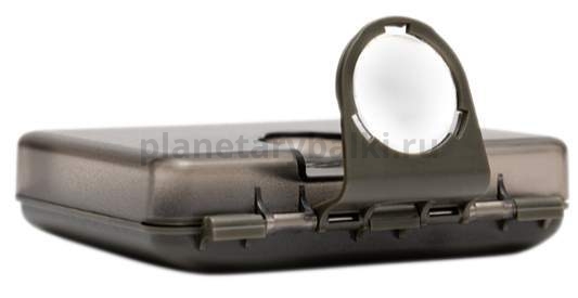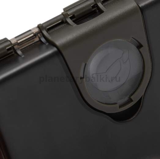 Силиконовая вставка с прорезями предназначена для надежного удержания каждого отдельного крючка на месте, и без риска повредить острие, кладя их в коробку или вынимая из нее. Сама коробка сделана из ударопрочного твердого пластика с магнитным креплением, чтобы она не открылась во время транспортировки, но, при использовании, коробка легко открывается и закрывается. Крышка имеет встроенную откидывающуюся линзу для увеличения, которую можно использовать для проверки заточки крючка, и удерживается на месте с помощью магнитной застежки, когда она не используется.