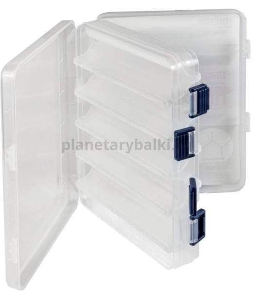 Лёгкий и ударопрочный пластик. Двусторонняя коробка имеет 10 ячеек, каждая приманка располагается в отдельной ячейке. Прочные и надёжные защёлки. предусмотрены вентиляционные отверстия.