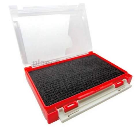 Лёгкий и ударопрочный пластик Worm Proof, не разъедается силиконом. Двусторонняя коробка имеет 24 съёмных перегородки. Прочные и надёжные защёлки , легко оперировать одной рукой. Петли со штифтами из нержавеющей стали. Пористый вкладыш с прорезями для фиксации крючков приманок.
