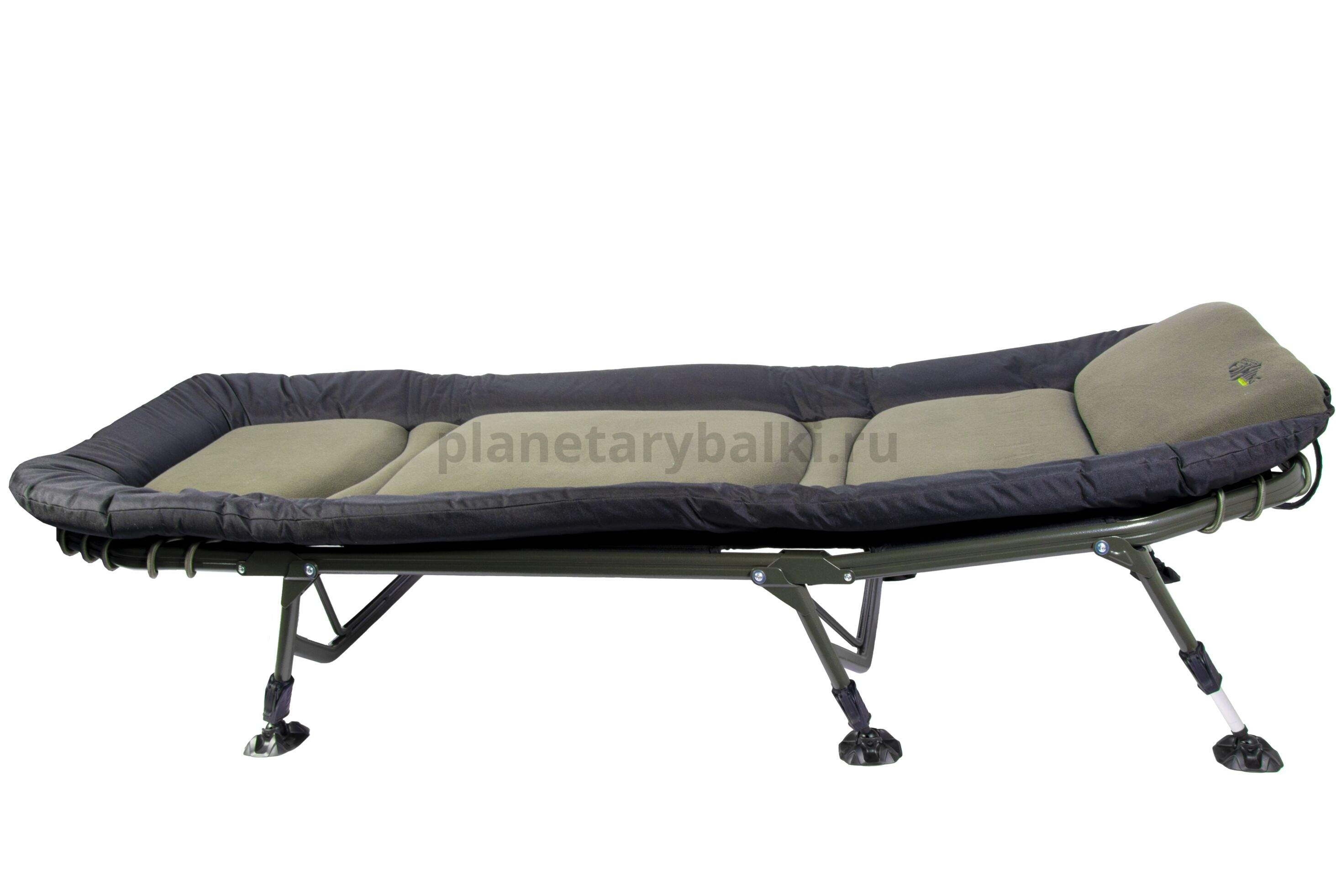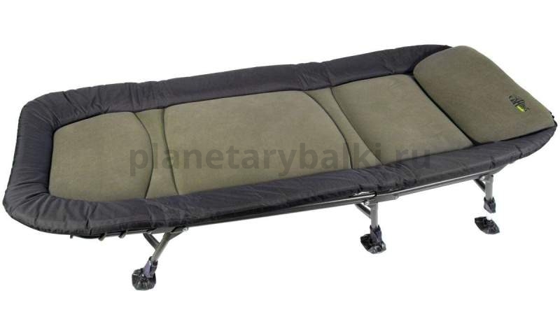 Высококлассная карповая кровать повышенной прочности с максимальным уровнем комфорта и увеличенными габаритами. Выдерживает вес до 140кг, обеспечивая при этом максимальный комфорт. Мягкая набивка и приятное на ощупь флисовое покрытие центральной части прекрасно отводят влагу в жару и сохраняют тепло в холодное время года. Края матраса отделаны износостойким полиэстером. Уникальная система фиксации матраса к раме предохраняет его от провисания, а интегрированный мягкий подголовник-подушка гарантирует максимальный уровень комфорта.