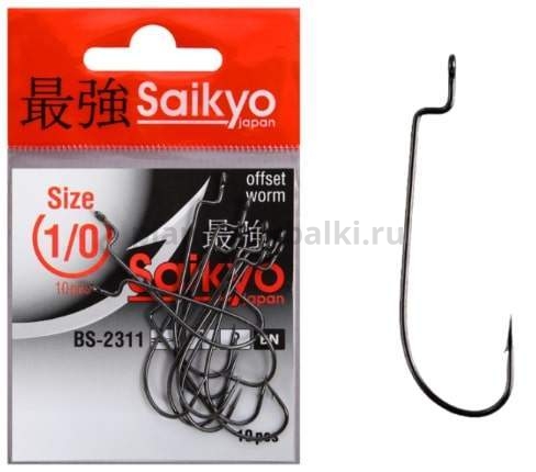 Классическая форма офсетного крючка с великолепной заточкой жала. Подходит для использования излишне мягких, узкотелых приманок. Средняя толщина проволоки. Крючки Saikyo BS-2311 рассчитаны на ловлю крупной рыбы с жесткой пастью – судак, сом, щука. Заточка по принципу игольного жала (Niddle point).