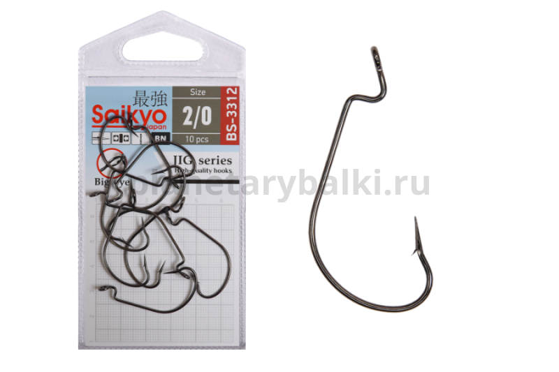 Крючок BS-3312 идентичен крючку BS-2312, но отличается большим ушком, благодаря которому его не заклинивает на арматуре шарнирных грузил. Заточка по принципу игольного жала (Niddle point). При проводке приманка движется более свободно и естественно. Средняя толщинат проволоки. Крючки Saikyo BS-3312 используются в классическом джиге и во многих других оснастках: поводковые, техасские, каролинские, Drop-shot. Форма Wide Gap применяется для резины разной жесткости и формы.