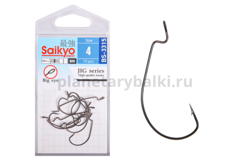 Крючок BS-3315 идентичен крючку BS-2315, но отличается большим ушком, благодаря которому его не заклинивает на арматуре шарнирных грузил. Заточка по принципу игольного жала (Niddle point). При проводке приманка движется более свободно и естественно. Тонкая проволока. Крючки Saikyo BS-3315 используются в классическом джиге и во многих других оснастках: поводковые, техасские, каролинские, Drop-shot. Форма Wide Gap применяется для резины разной жесткости и формы.