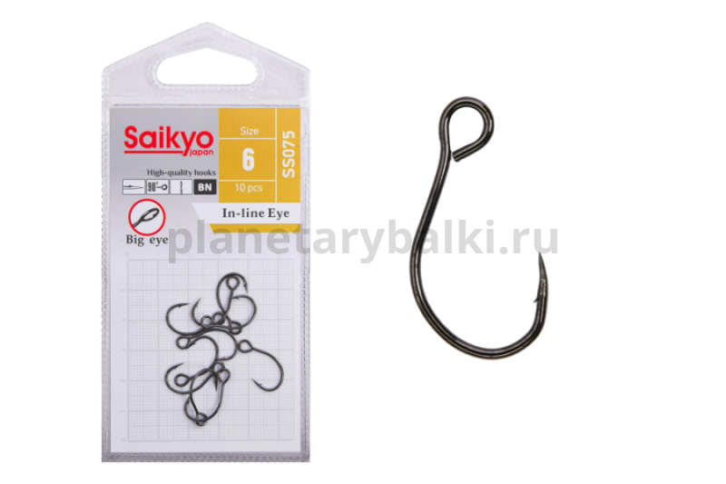 Крючки Saikyo SS075-BN IN-LINE EYE №6, 10шт.