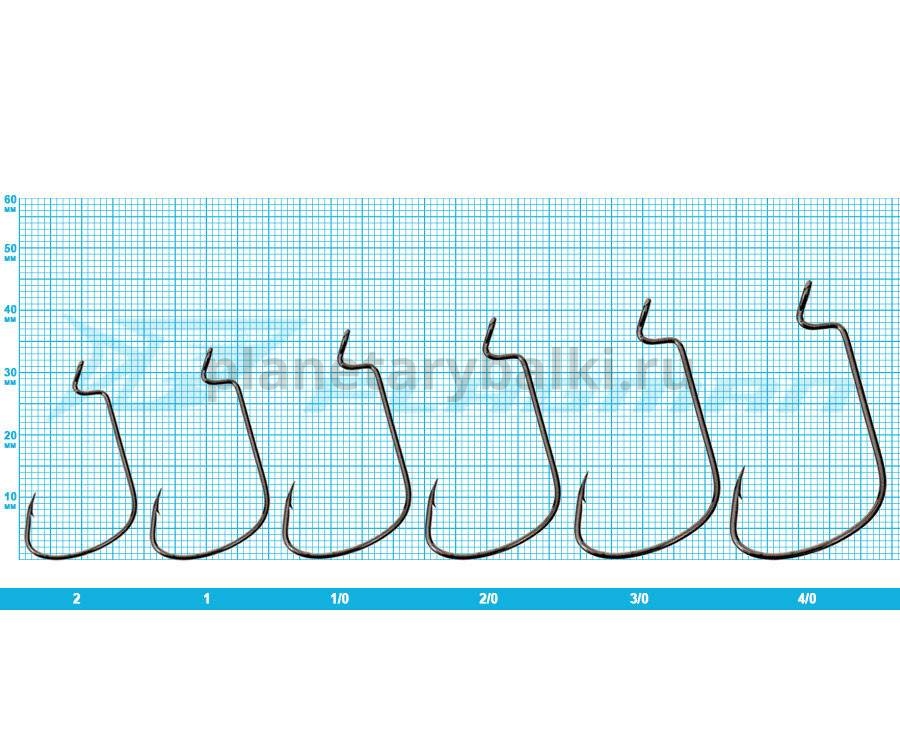 Офсетные крючки, характеризующиеся очень широким поддевом, благодаря чему на них можно монтировать объемные, широкотелые приманки. Благодаря круглому, без режущих граней, сечению жала крючок сидит в пасти рыбы плотно и имеет минимальный шанс вылететь при вываживании. В то же время относительно тонкая проволока обеспечивает прекрасные проникающие свойства и, как следствие, — надежную подсечку. Увеличенное ушко дает необходимую степень свободы крючка при использовании его на шарнирном монтаже, который у нас даже в незацепляющихся монтажах популярнее классического «Техаса».