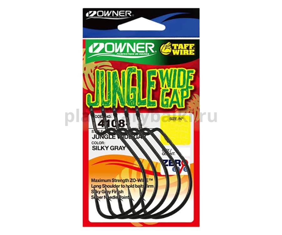 Owner Offset Jungle Wide Gap 4108 – мощный офсетный крючок, разработанный для использования с толстыми шнурами и большими приманками. Этот крючок изготовлен из инновационного материала ZoWhire, который гораздо легче и прочнее высокоуглеродистой стали. Характеризуется круглым широким загибом, средней длины цевьем, прямоугольной ступенькой, длинным прямым жалом и стойким покрытием Silky Grey, которое минимизирует трение и обеспечивает превосходное проникновение крючка в костистую пасть рыбы. Серия Owner 4108 – идеальное решение для оснащения пластиковых червей с толстым телом, крупных твистеров, слагов и других подобных им приманок из мягкого пластика. Острейшее жало Owner Offset Jungle Wide Gap с самой совершенной заточкой и нормальной величины бородка гарантируют эффективную подсечку и уверенное удержание подсеченной рыбы.