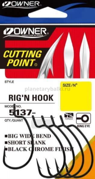 Owner Rig'N Hook 5137 — офсетный крючок специально спроектирован под мягкие пластиковые приманки с достаточно толстым телом.