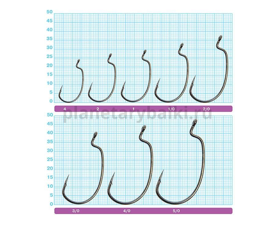 Этот офсетный крючок специально спроектирован под мягкие пластиковые приманки с достаточно толстым телом – черви и твистеры. В связи с этим он имеет ярко выраженную округлую форму как самого изгиба, так и цевья. С успехом может использоваться в каролинской, техасской оснастках с грузами типа "пуля", а также в обычной оснастке с "ушастым" грузиком для ловли в закоряженных местах. Крючки имеют самое стойкое покрытие Black Chrome и совершенную заточку жала Cutting Point.