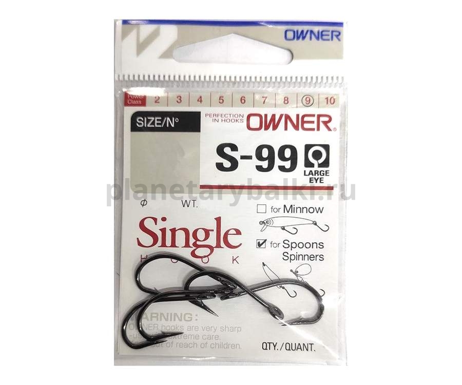 Owner S-99 Single Hook 51570 – серия специальных спиннинговых крючков для оснащения летних и зимних блесен, спиннеров и прочих приманок. Также эти крючки находят свое применение в джиговой ловле, поскольку прекрасно подходят для монтажа на «ушастое» грузило. Крючки Owner 51570 характеризуются крепежным колечком большого диаметра (под заводное кольцо), широким округлым загибом, кованым поддевом, нормальной длины цевьем, прямым жалом и обычной величины бородкой. Owner S-99 имеют стойкое к коррозии покрытие Black Chrome. Их отличает повышенная прочность и надежность при вываживании рыбы. Острейшее жало с идеальной заточкой и зацепистая бородка гарантируют эффективное засечение и надежное удержание любого трофея.