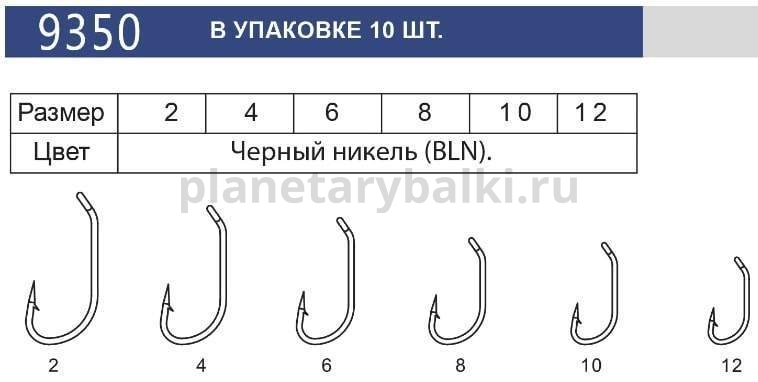 Крючок Volzhanka 9350-BLN №12, 10шт.