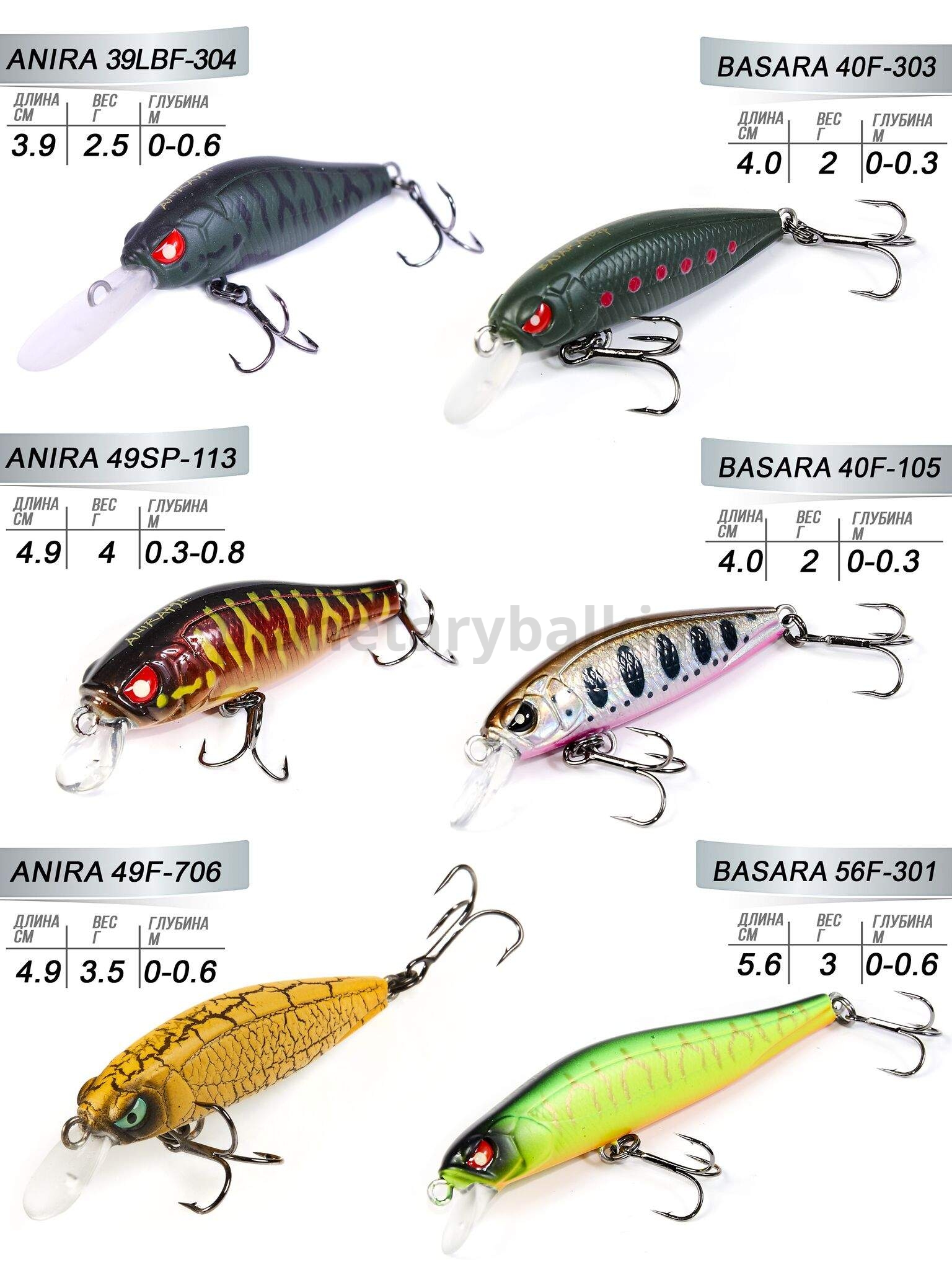 Воблеры: ANIRA F 04.90/706, ANIRA LBF 03.90/304, BASARA F 04.00/105, BASARA F 04.00/303, ANIRA SP 04.90/113, BASARA F 05.60/301