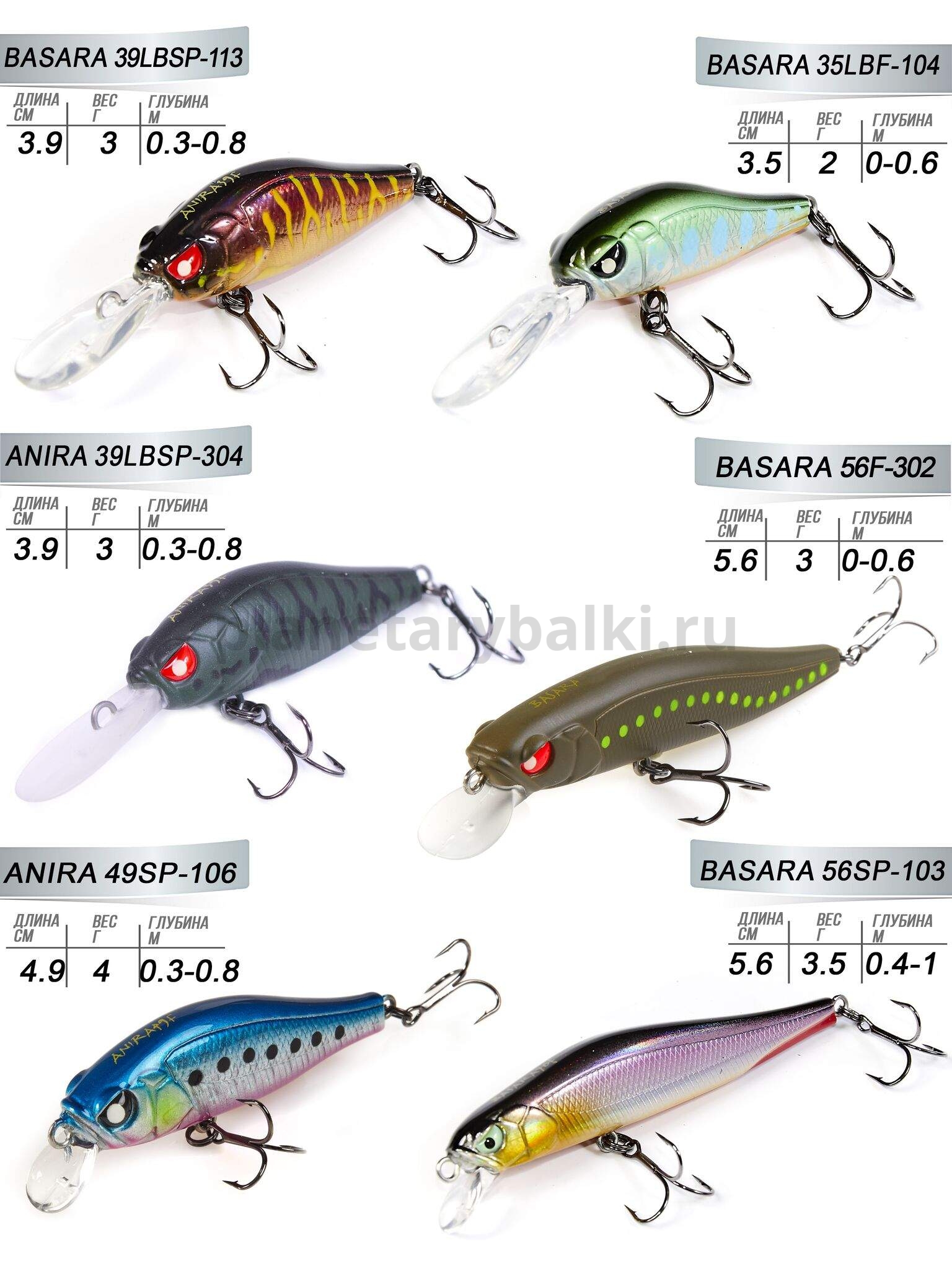 Воблеры: BASARA F 05.60/302, BASARA LBF 03.50/104, ANIRA LBSP 03.90/304, ANIRA SP 04.90/106, ANIRA LBSP 03.90/113, BASARA SP 05.60/103