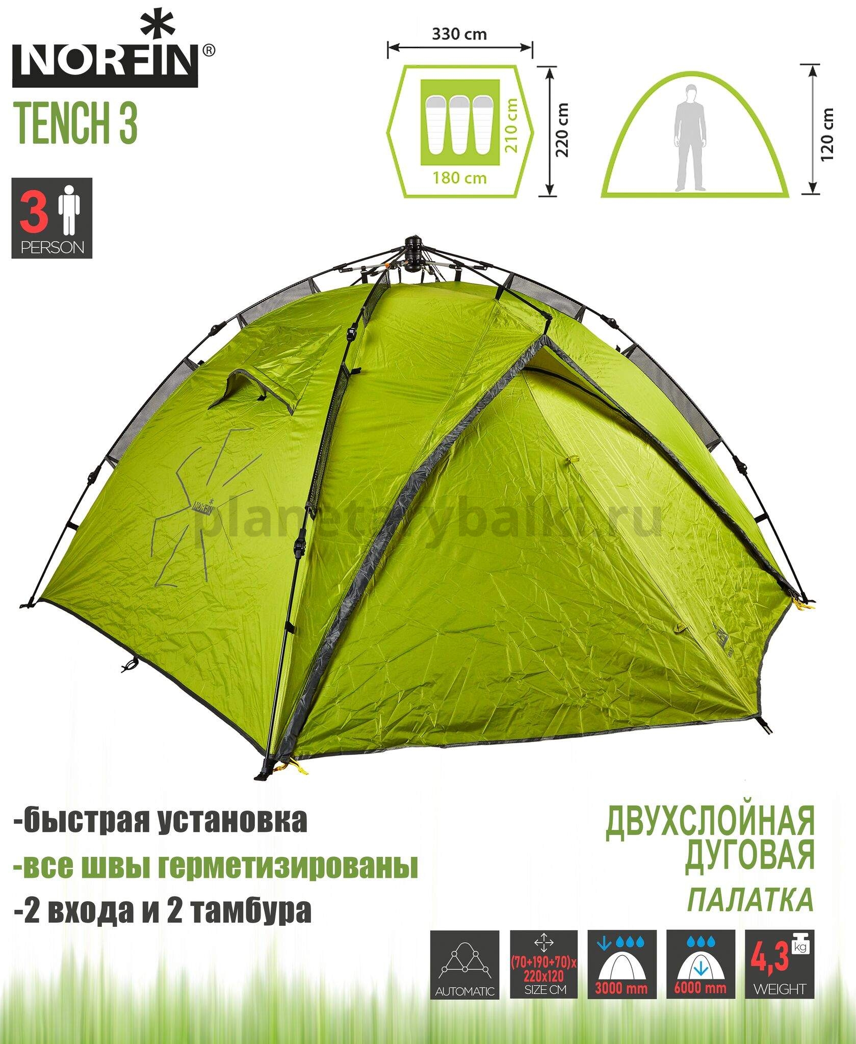 Палатка автоматическая 3-х местная Norfin TENCH 3 NF