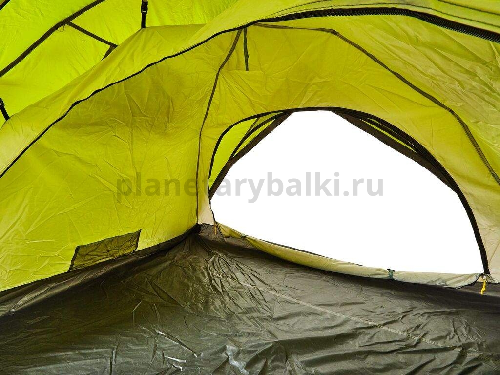 Двухслойная дуговая палатка с полуавтоматическим быстро сборным каркасом. Имеет комфортное внутреннее пространство, два входа и два тамбура. Внутренняя палатка и тент устанавливаются одновременно. Установка палатки может быть совершена одним человек за считанные минуты.