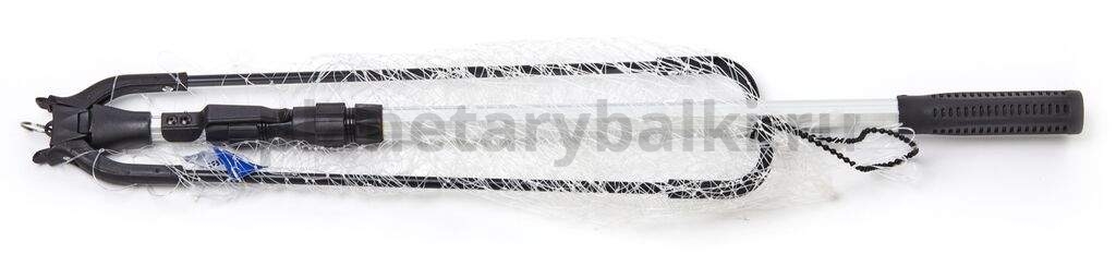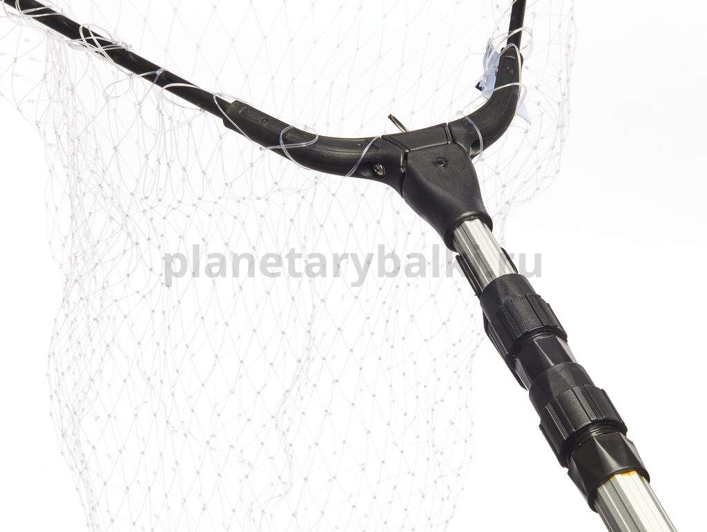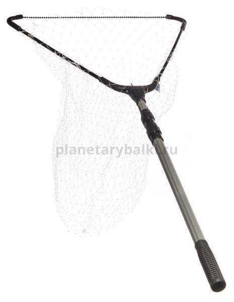 Длинный складной подсачек с треугольной формой сачка с сеткой из лески, оборудованный телескопической рукояткой.