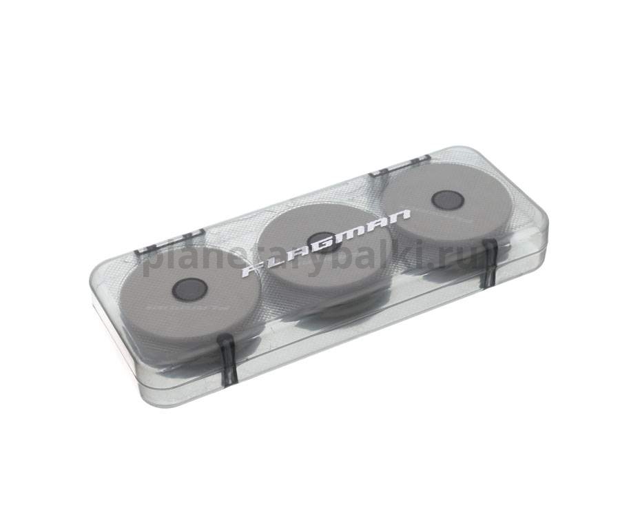 Прозрачный корпус поводочницы Флагман Эва Риг Бокс позволяет видеть все шпули. Крышка хранилища закрывается на две легкие, магнитные защелки. На крышке сверху нанесен логотип производителя - Flagman. Круглые шпули позволяют избежать резких перегибов и деформаций лески.