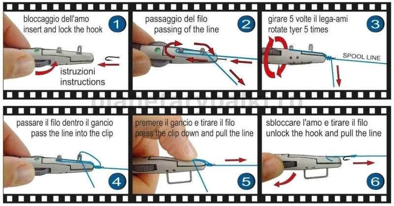 Инструкция по использованию крючковяза Stonfo Art.448G для привязывания крупных крючков (№ 6-18):