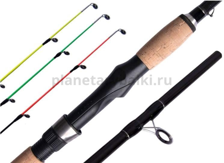Фидер изготовлен из комбинации материалов - усиленный комель выполнен из графита IMF, верхние колена - из высокомодульного графита, что делает удилище очень прочным с правильным распределением нагрузки при забросе, обеспечивающим отличную посылистость и необходимую жесткость. Фидер оснащен современным катушкодержателем, рукоять выполнена из комбинации пробки и EVA, пропускные кольца SIC, в комплекте идут три взаимозаменяемые вершинки различной жесткости.