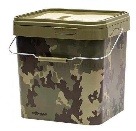 KORDA Compac Bucket – прямоугольное прикормочное ведро с герметичной крышкой и камуфляжной окраской.
