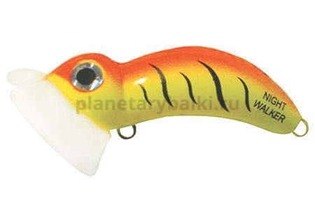 Воблер Halco Night Walker - шумная поверхностная приманка. Лопасть воблера Halco Night Walker раздвоена и при правильной проводке разбрызгивает воду с тихим всплеском. Изначально приманка была предназначена для ловли в ночное время суток, поэтому лопасть у нее светится в темноте, привлекая рыбу. При желании лопасть приманки можно дополнительно “зарядить” светом карманного фонарика или вспышкой фотоаппарата. Приманка лучше работает на спокойной воде при ловле взаброс. Небольшое утяжеление в задней части приманки дает дополнительные возможности для ловли взаброс.