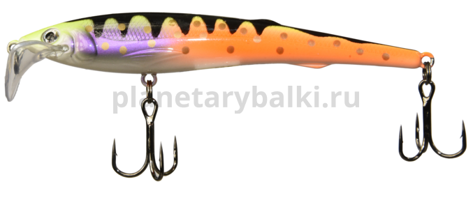 Воблер с седловидной лопаткой специально разработан для троллинга судака, крупного окуня, озерной кумжи и лосося. Благодаря форме носовой лопасти и специальной балансировке, STINKA при проводке время от времени совершает броски в сторону, что провоцирует хищных рыб на поклевку. У модели 110FMR рекомендуемая скорость проводки от 3 до 6 км/ч. Оптимальная скорость проводки зависит от погодных условий. Рабочее заглубление этой модели составляет от 1 до 1,5 метров. Воблер «тихий», в нем не предусмотрены шумовые камеры, что бывает особенно важно при ловле осторожной рыбы. Приманка продемонстрировала хорошие результаты на различных водоемах России. Вся цветовая гамма LureMax разрабатывалась при непосредственном участии российских рыболовов специально с учетом специфики ловли на местных водоёмах. Приманки светятся в ультрафиолете, что повышает их заметность для хищника в условиях низкой освещенности. Широкая цветовая гамма, включающая как естественные – «пищевые», так и провоцирующие – «кислотные» расцветки, даёт возможность подобрать подходящую окраску воблера STINKA для любых условий освещенности и прозрачности воды на водоеме. Несмотря на то, что это в первую очередь троллинговая приманка, STINKA 110FMR отлично подходит для ловли взаброс на глубинах до 2 метров. Игра не требует сложной анимации и подразумевает равномерную проводку с небольшими паузами и ускорениями. Приманка оснащена крючками Saikyo (Япония).