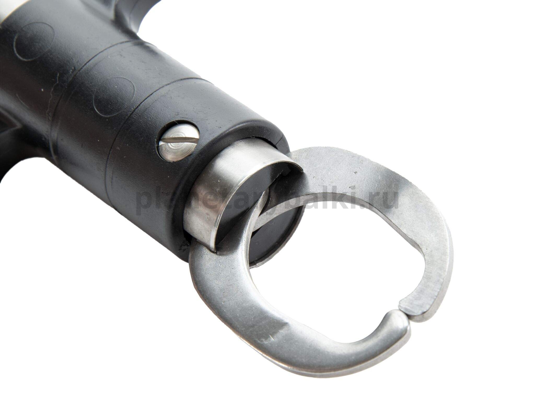 Захват челюстной – он же липгрип (lipgrip). Специальное приспособление для вытаскивания из воды щуки, схватившей крупную приманку, оснащенной тройниками. Он также полезен для приверженцев C&R (поймал-отпусти), так как минимально травмирует рыбу. Принцип действия основан на плотном смыкании металлических дужек на нижней челюсти рыбы. Кость нижней челюсти достаточно прочна, так что рыба не сорвется и не травмирует ее. Немного хлопотное заведение устройства в рот бьющейся рыбы с лихвой окупается тем, что вы не пачкаете руки, не травмируете рыбу и не выпутываете тройники из сетки подсачека.